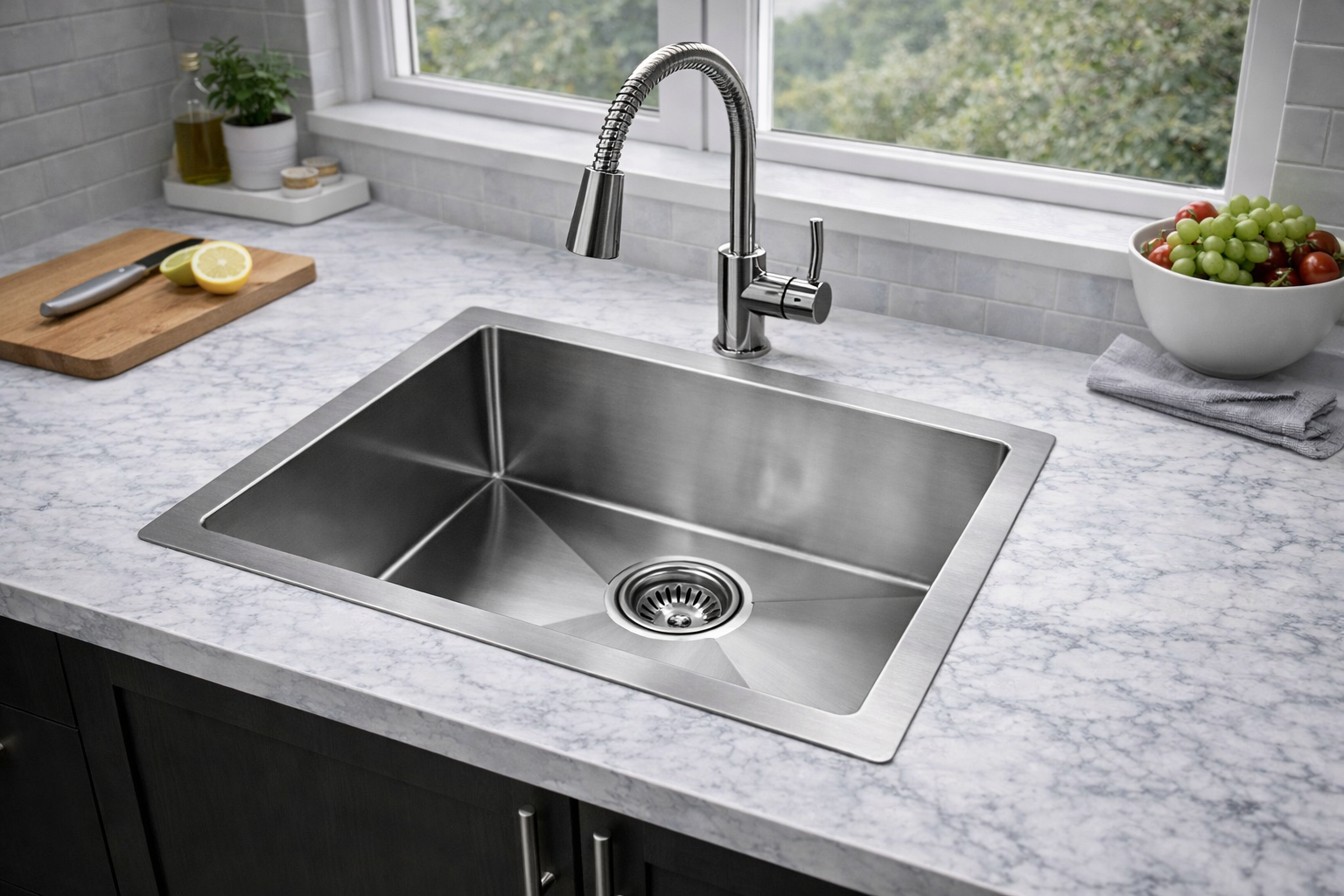 Noxwell Stainless Steel Sink is crafted from premium food-grade 304 stainless steel with a nano-coated surface for scratch, oil, and bacteria resistance.